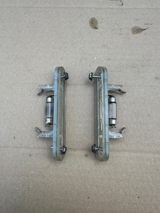 Coppia di luci targa per Mercedes W124. - Componenti in plastica trasparente. - Include portalampada e portalampada.