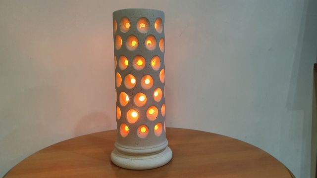 Lampada Da Tavolo in pietra leccese interamente lavorata a mano compatibile con qualsiasi tipo di lampadina altezza 32 cm. larghezza 14 cm.