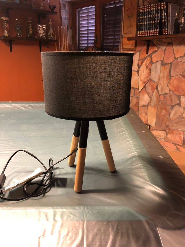 Lumetto da comodino in legno con paralume nero in tessuto 36x23