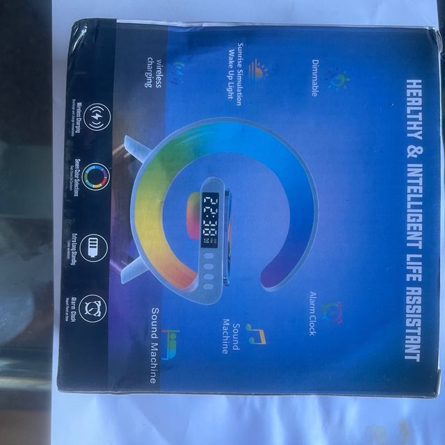 Dettagli del prodottoLampada da tavolo multifunzionale con funzioni sveglia e lettore musicale. Include ricarica wireless. - Simulazione dell'alba. - Luce con sette selezioni di colore. - Regolabile. - Ricarica wireless. - Batteria a lunga durata. - Lettore musicale. - Sveglia. Luce sveglia con suono e ricarica wireless Supporto altoparlante Ritmo RGB Sveglia intelligente per iPhone 16 15 14 13 12 Pro Max Plus AirPods per Samsung per Xiaomi 15 14 13 12 La descrizione è stata tradotta automaticamente.