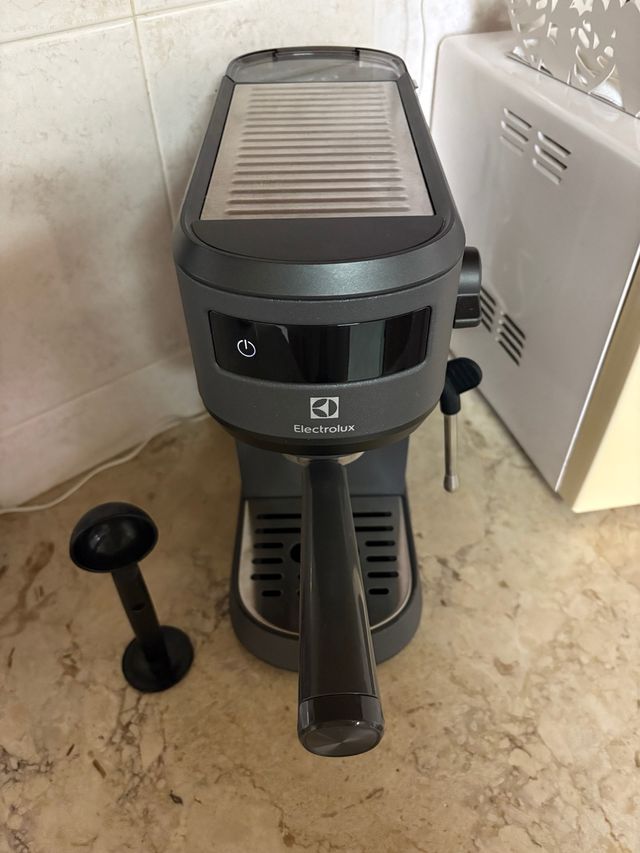 Dettagli del prodottoMacchina da caffè Electrolux grigio scuro. Compatibile con cialde con apposito filtro.