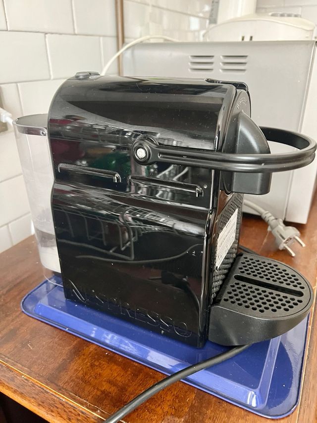 Dettagli del prodottomacchina del caffe nespresso classica, nera, usata ma perfettamente funzionante. la vaschetta ha dei residui di calcare per via dell’acqua. presente anche kit decalcificante. possibile consegna a mano a milano