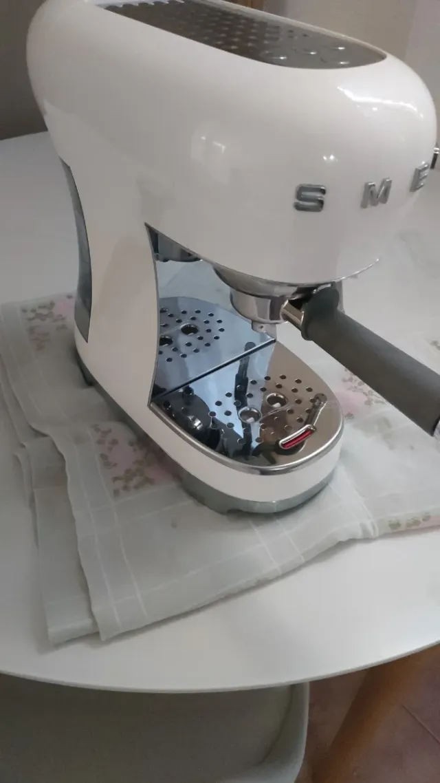 Dettagli del prodottoMacchina per caffè espresso Smeg dal design iconico e retrò, in finitura bianca lucida.