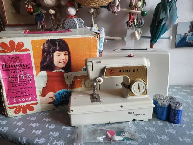 Dettagli del prodottoMacchina da cucire giocattolo Singer Golden Panoramic.
