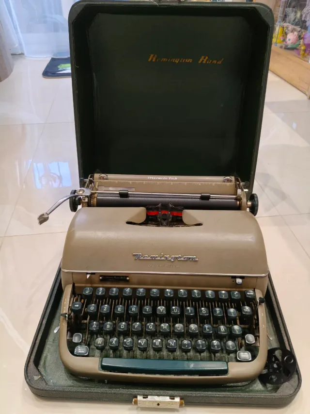 Macchina da scrivere portatile Remington Rand, completa di custodia. - Design classico e compatto. - Custodia rigida verde per il trasporto.
