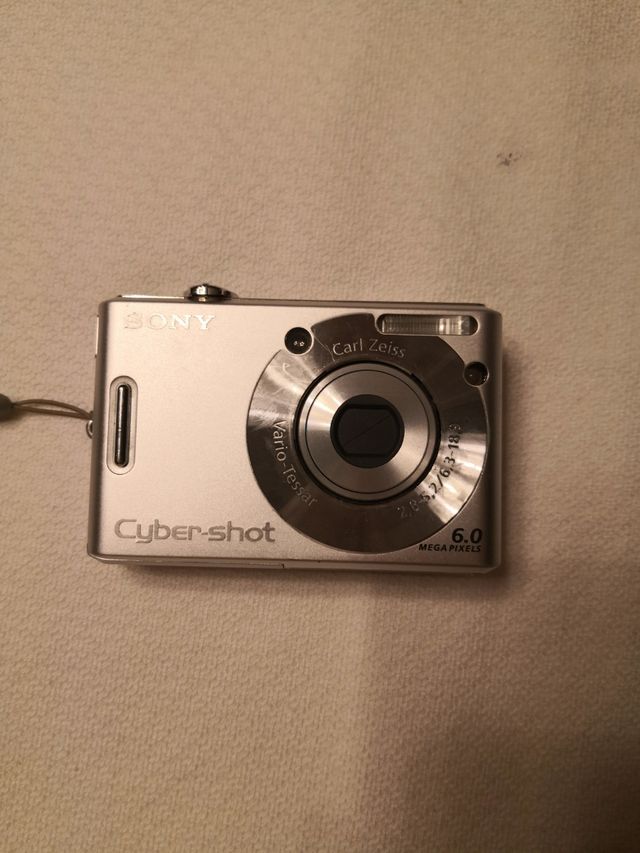 Macchina fotografica misura 6cm per 9cm. Sony cyber shot. Tenuta bene. Ma a causa di traslocco non ho piu la scatola e istruzioni. Da sostituire la batteria