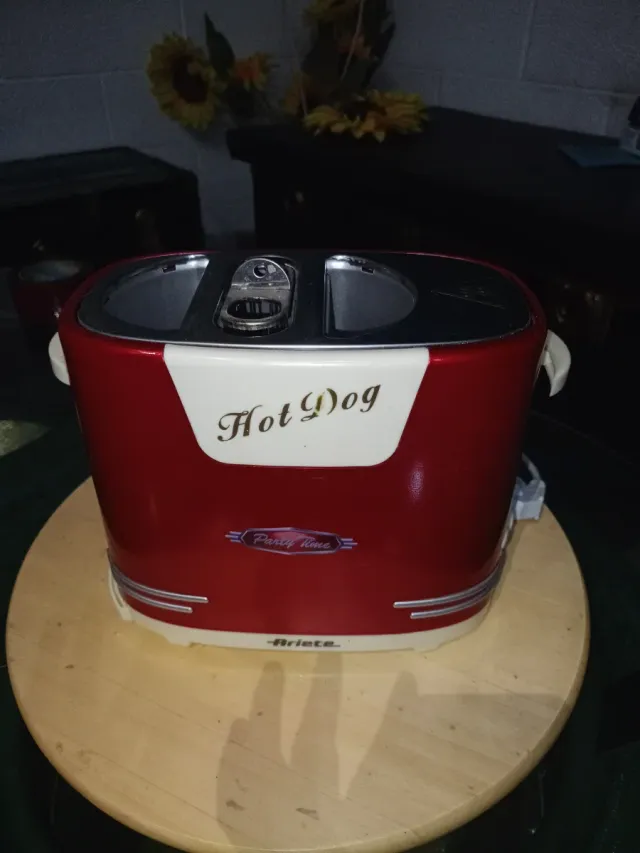 Dettagli del prodottoMacchina per preparare hot dog in stile retrò, perfetta per feste e occasioni speciali.