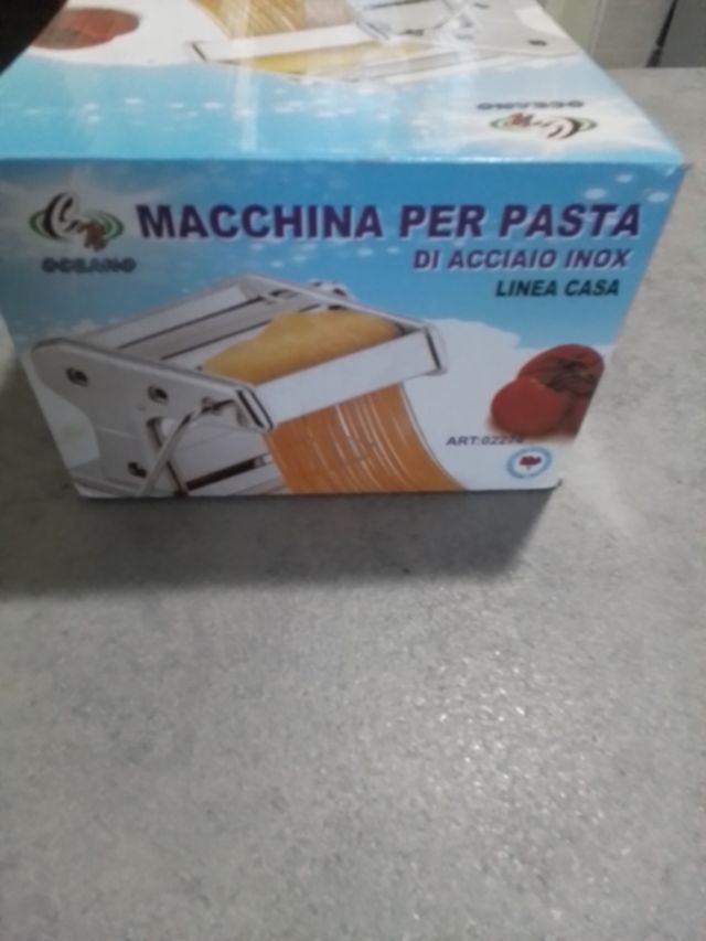 Macchina per la pasta utilizzate per stendere il Fimo. È nuova ha ancora la plastica blu da togliere. Compreso di manovella e fermo al tavolo. Peso 2,5kg.