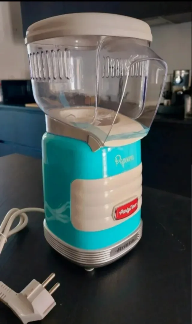 Macchina per popcorn Ariete in stile vintage, perfetta per le serate cinema. - Colore: turchese e crema. - Design retrò. - Coperchio trasparente.