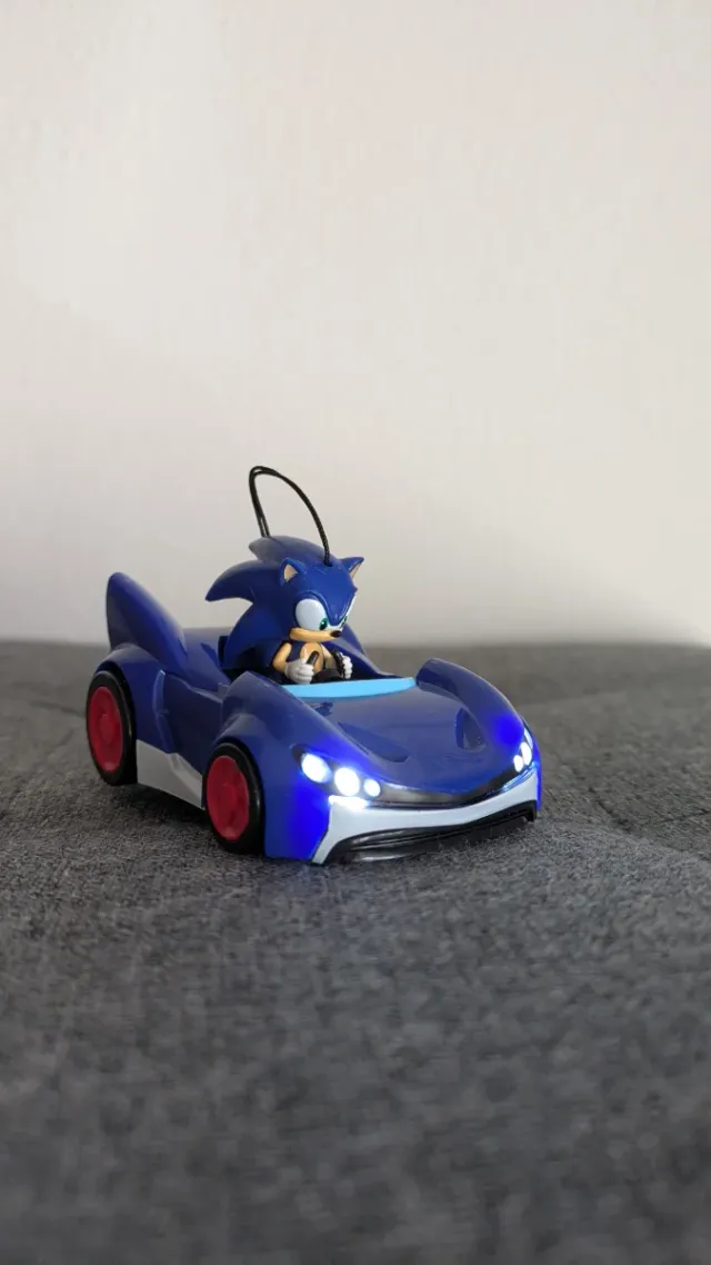 Dettagli del prodottoMacchinina da corsa blu con personaggio di Sonic.