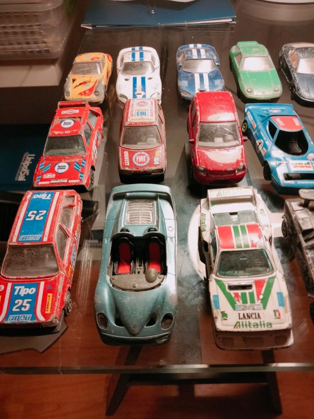 18 macchinine vintage burago, in parte sverniciate e a qualcuna manca qualche ruota. vendo lotto intero