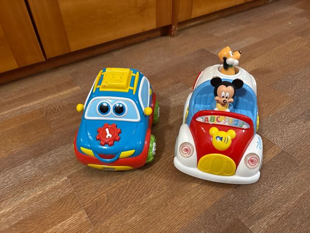 - Una macchinina bianca e rossa con personaggi Disney, Mickey Mouse e Pluto.