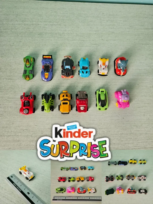 Dettagli del prodottoVendo lotto composto da 11 macchinine sorprese Kinder di varie collezioni + 1 macchina non Kinder (quella dell'ultima foto).