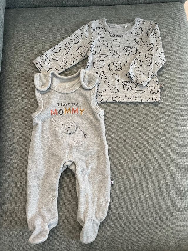 Completino con maglia manica lunga e salopette. taglia: 1mese, 50cm Apertura facilitata sul collo Colore rosa e panna Mai indossato