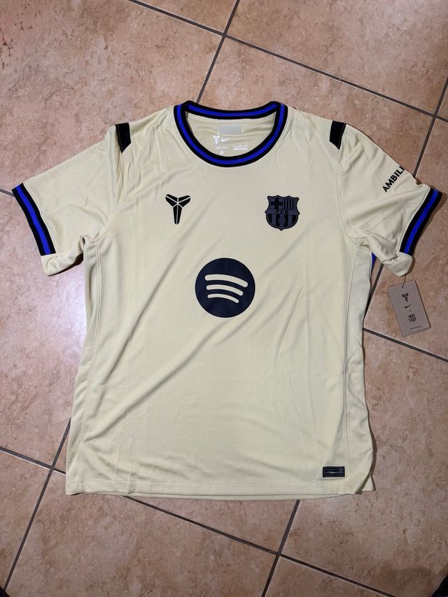 Maglia speciale FC Barcelona in collaborazione con Kobe Bryant. - Colore: Giallo - Logo Nike - Stemma FC Barcelona - Logo Spotify - Omaggio a Kobe Bryant