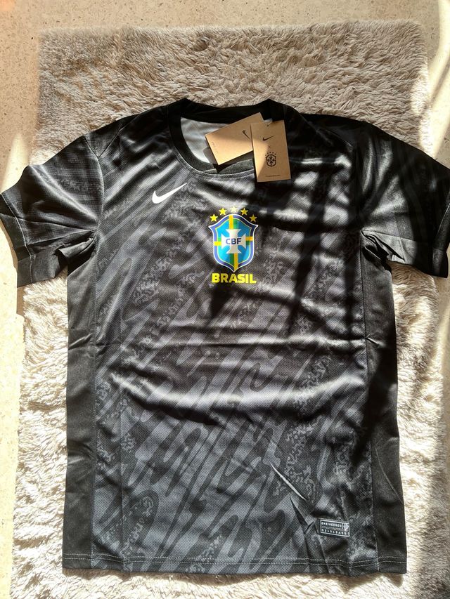 Maglia da calcio del Brasile, modello 2024. - Colore nero con dettagli grafici. - Logo Nike e stemma CBF Brasil.