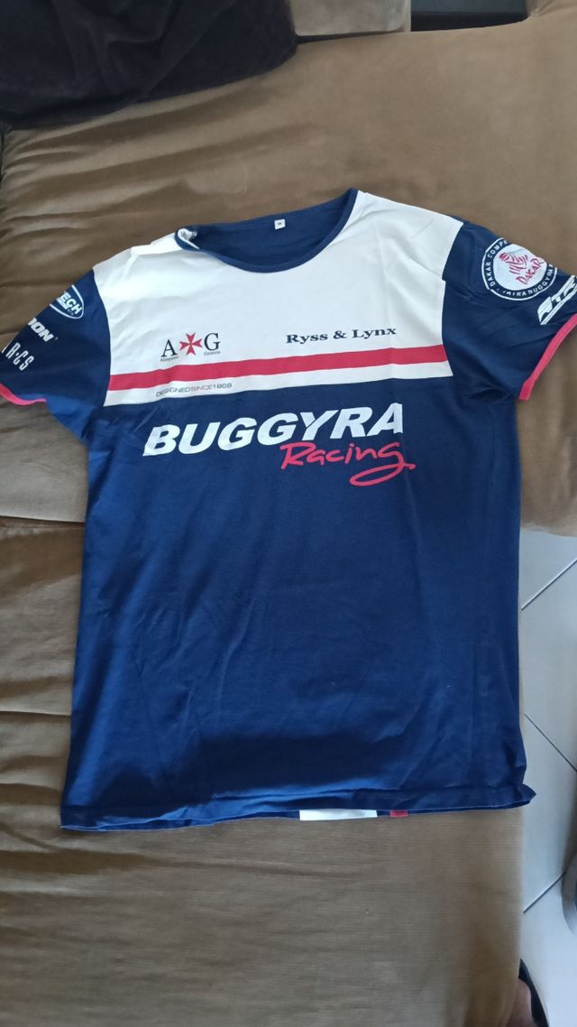 Vendo maglia da uomo Buggyra Racing. - Taglia M - Ottime condizioni - Design con loghi DAKAR, Etrc e Buggyra Racing - Colori: blu, bianco e rosso
