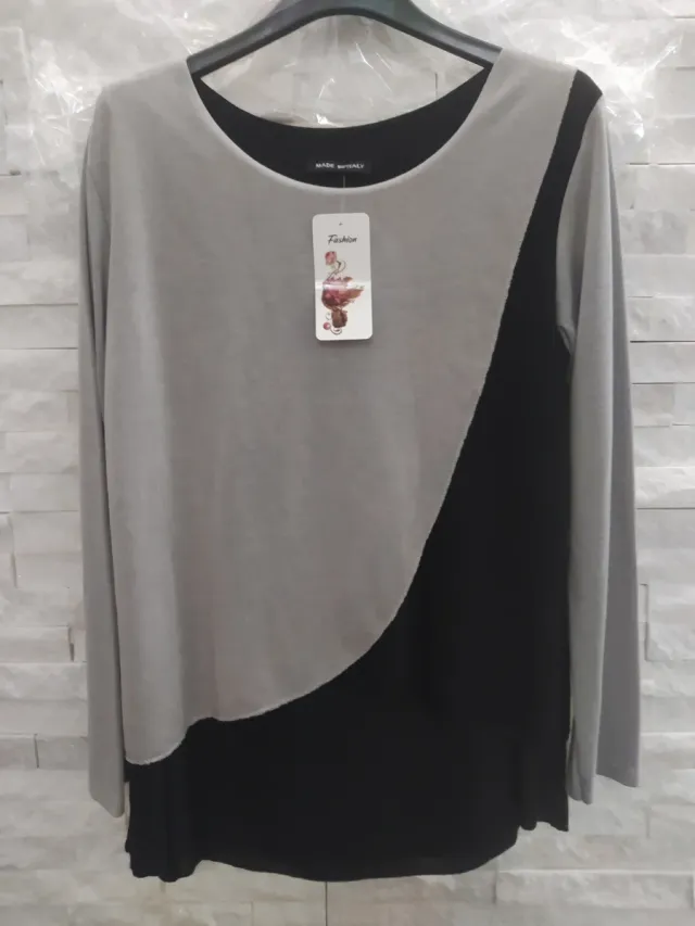 Maglia donna manica lunga grigio/nera