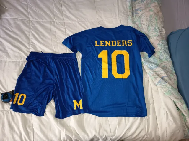 Completo maglia e pantaloncini da calcio. Taglia S - Maglia blu con nome LENDERS e numero 10. - Pantaloncini blu. Holly e benji