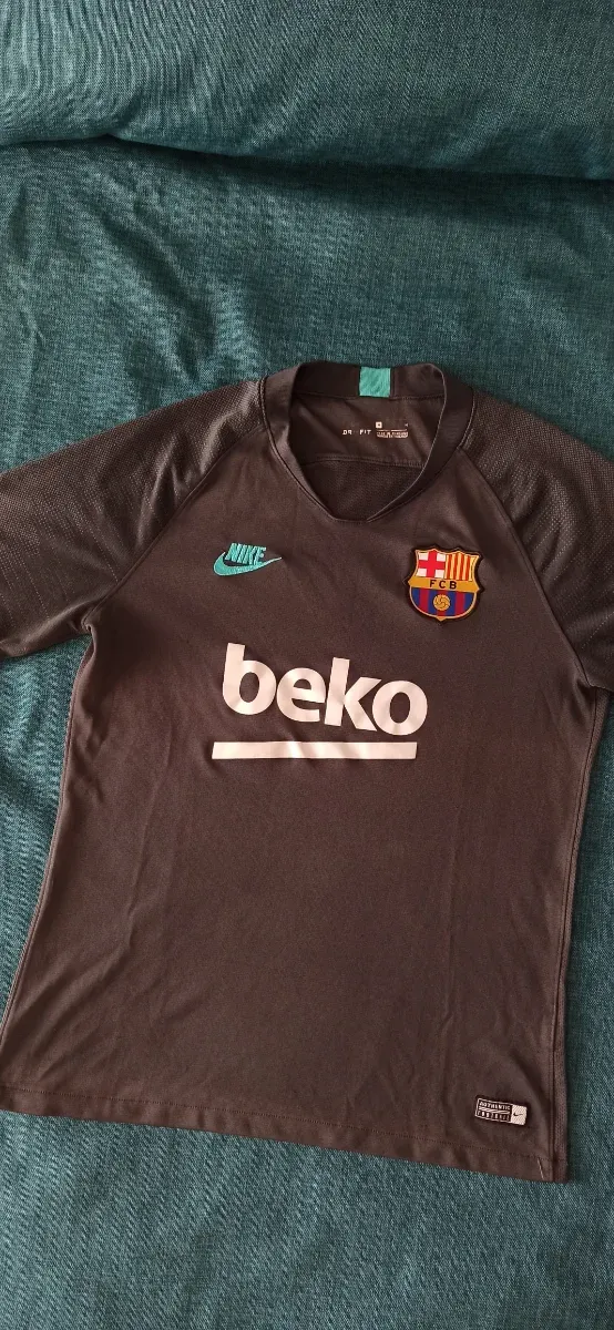 Maglia da calcio FC Barcelona. - Colore grigio scuro. - Logo Nike. - Sponsor Beko. - Stemma FC Barcelona.