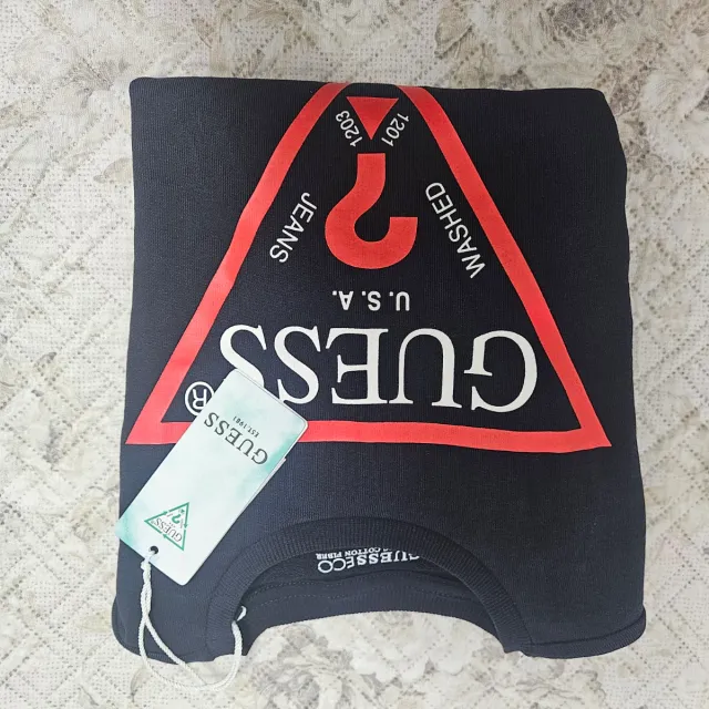 Maglia nera Guess per bambino con logo triangolare. - Logo Guess stampato sul davanti. - Tessuto in cotone. - Maniche lunghe.