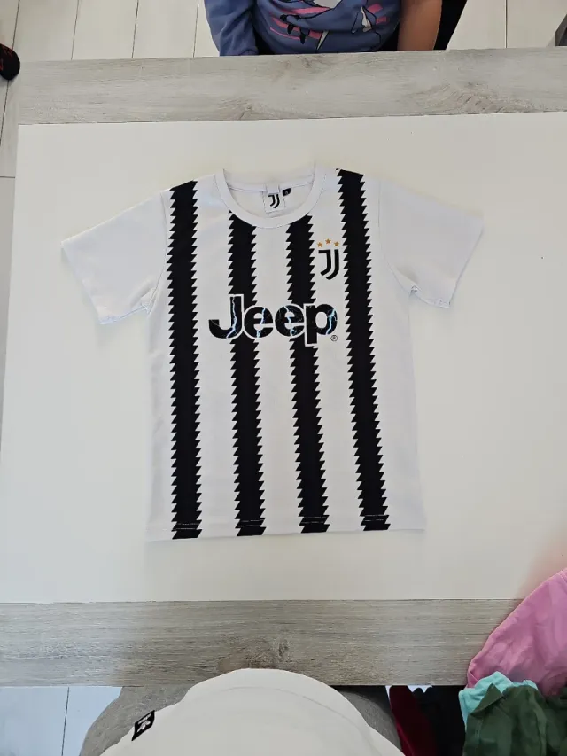 Dettagli del prodottoMaglia da calcio Juventus, modello 2023, con le iconiche strisce bianche e nere.