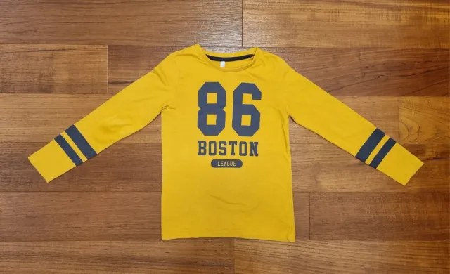 Maglia a maniche lunghe gialla con stampa. - Numero 86. - Scritta BOSTON LEAGUE. - Strisce blu sulle maniche maniche - Come nuova