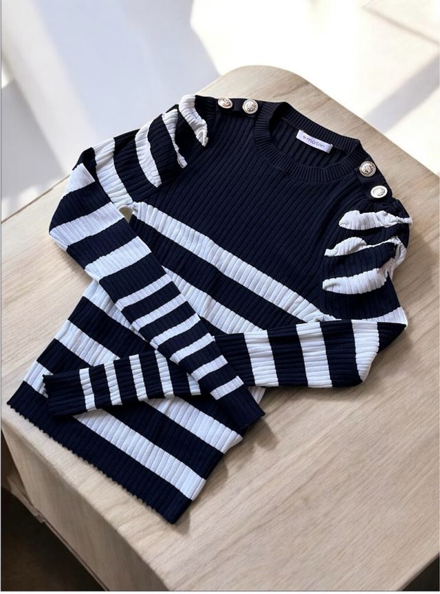 Maglia Motivi a coste righe bianche e blu