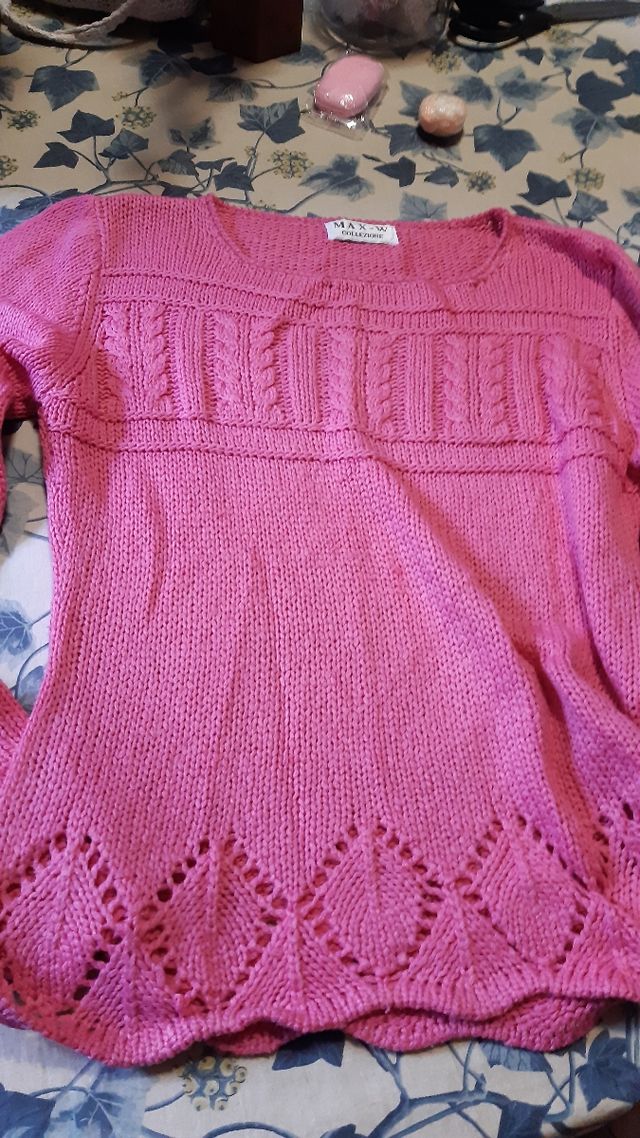 Dettagli del prodottoBellissimo maglione rosa lavorato a maglia, perfetto per le giornate più fresche.