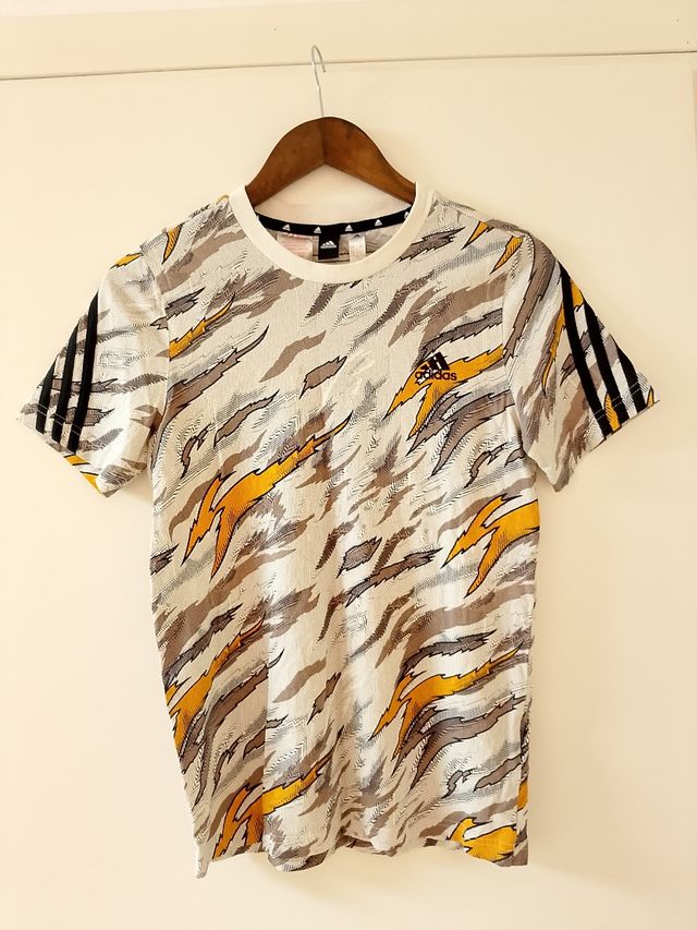 Dettagli del prodottoMaglietta Adidas per bambino, taglia 13/14 anni. La maglietta presenta una fantastica stampa mimetica con dettagli in giallo e nero. - Modello a maniche corte. - Perfetta per la primavera/estate. - Ottime condizioni.