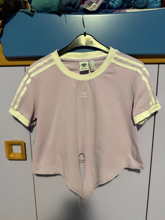 Maglietta Adidas crop viola con fiocco