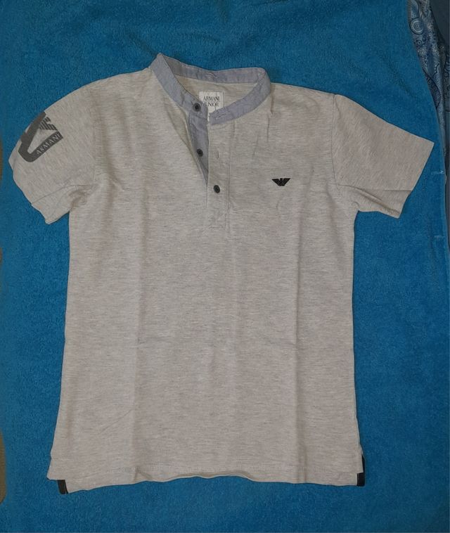 Dettagli del prodottoMaglietta a maniche corte per bambino firmata Armani Junior. Colore grigio melange.