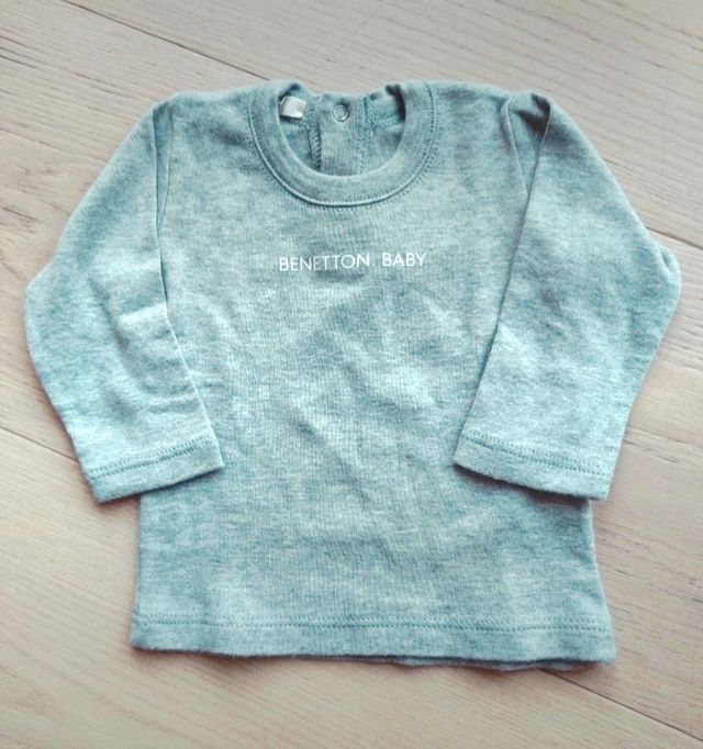 Maglietta a manica lunga per neonato Benetton Baby. - Colore grigio - Logo Benetton Baby stampato sul petto.