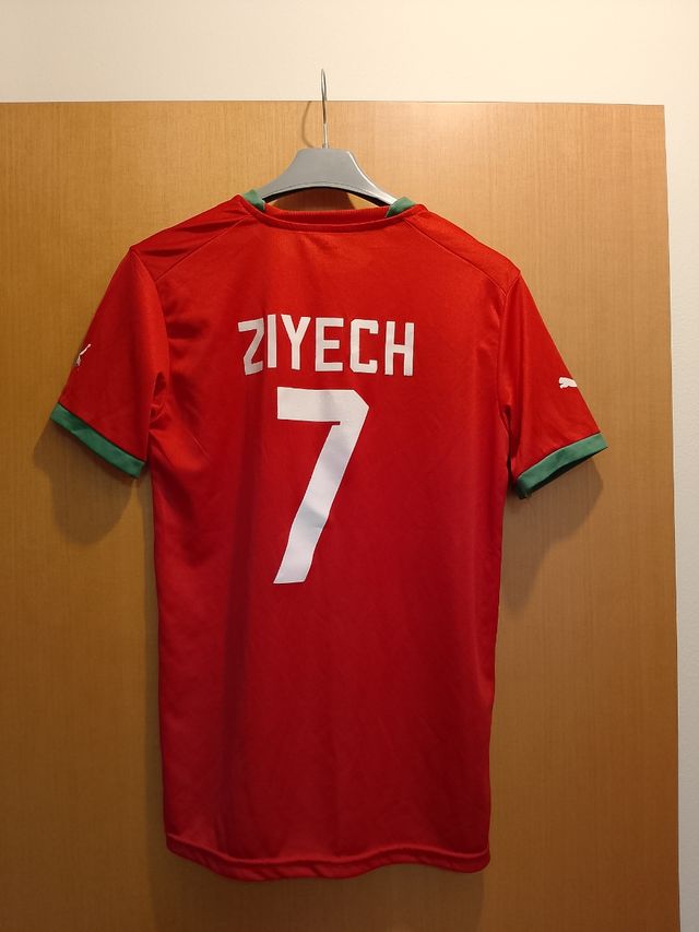 Maglietta da calcio rossa con nome e numero. - Nome: Ziyech - Numero: 7 - Colori: Rosso, verde