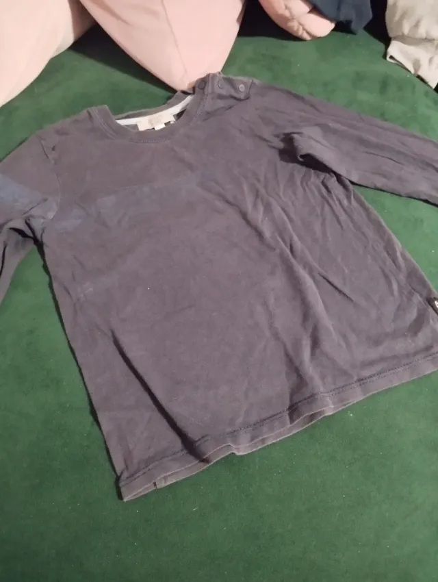 Maglietta a maniche lunghe di colore grigio. - Scollo rotondo. - Chiusura con bottoni sulla spalla. - Orlo a costine.
