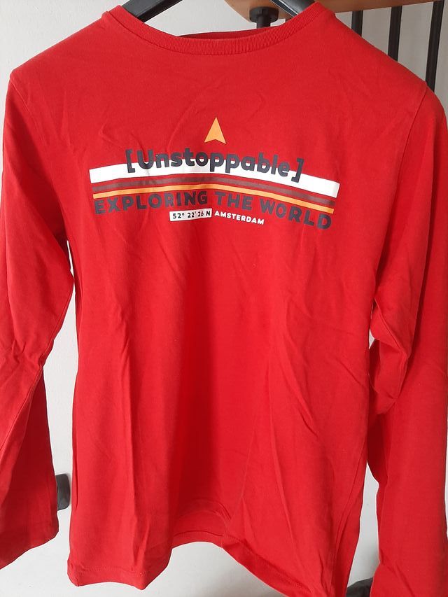 Vendo il seguente abbigliamento per bambino/ragazzo; - Maglietta manica lunga marca OVS colore rosso per ragazzo anni 12/13 cm 158, costo 3 euro,