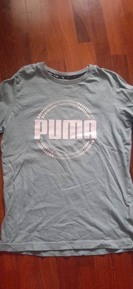 Maglietta a maniche corte del marchio Puma, taglia 11-12 anni. - Colore verde acqua - Logo Puma stampato sul davanti.