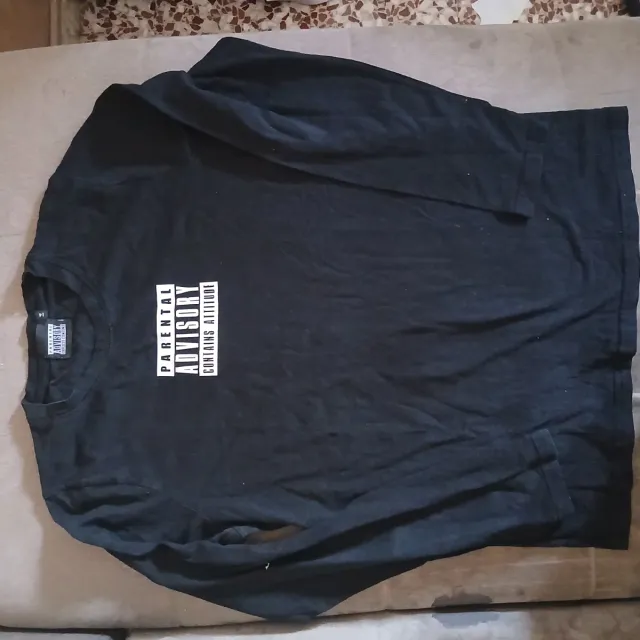 Maglietta nera a maniche lunghe con stampa Parental Advisory. - Taglia 14 anni. - Stampa Parental Advisory Contains Attitude sul petto.