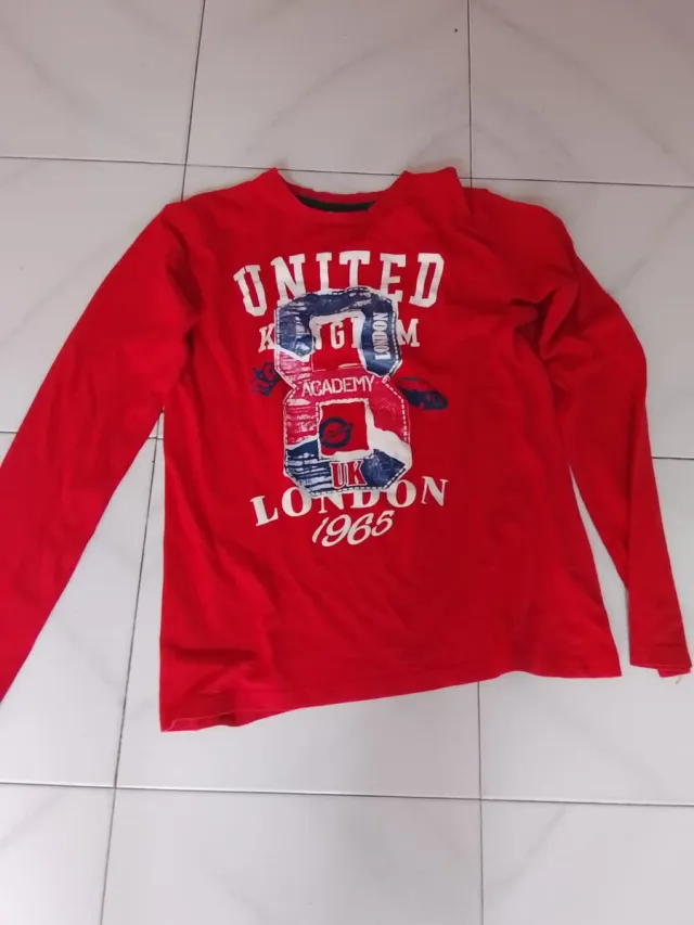 Maglietta rossa a manica lunga per bambino con stampa. - Stampa United Kingdom London 1965 Academy. - Colore rosso vivace. - Maniche lunghe.