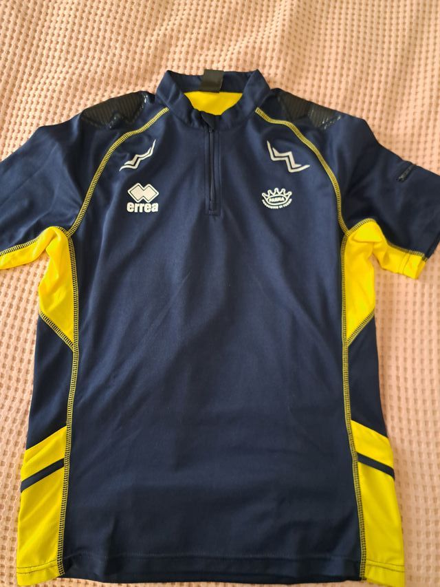 Maglietta Sportiva Errea Nuova In Tessuto Tecnico Blu e Giallo Adatta Per Sport All'Aperto Jogging Ciclismo Ed Altro Misura "L"