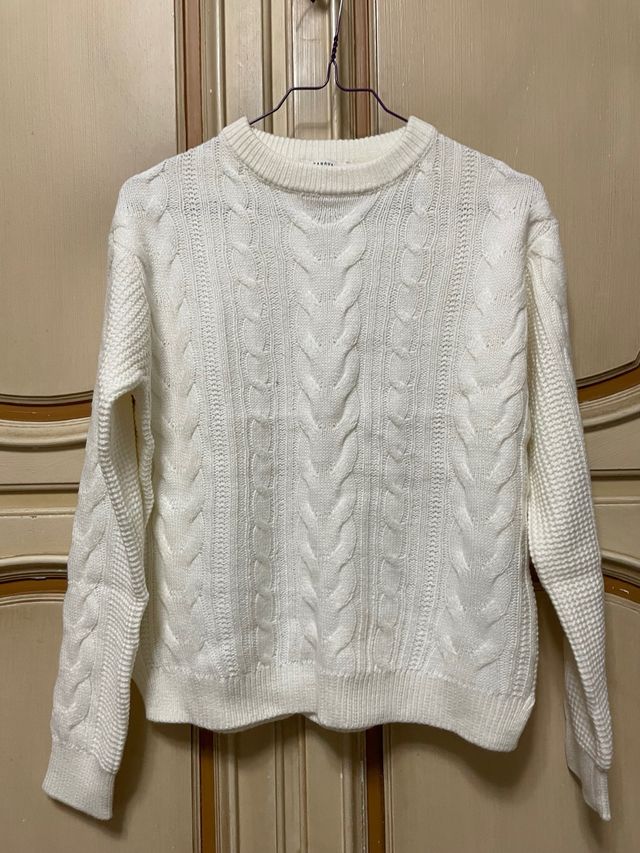 Maglione bianco lavorato a trecce