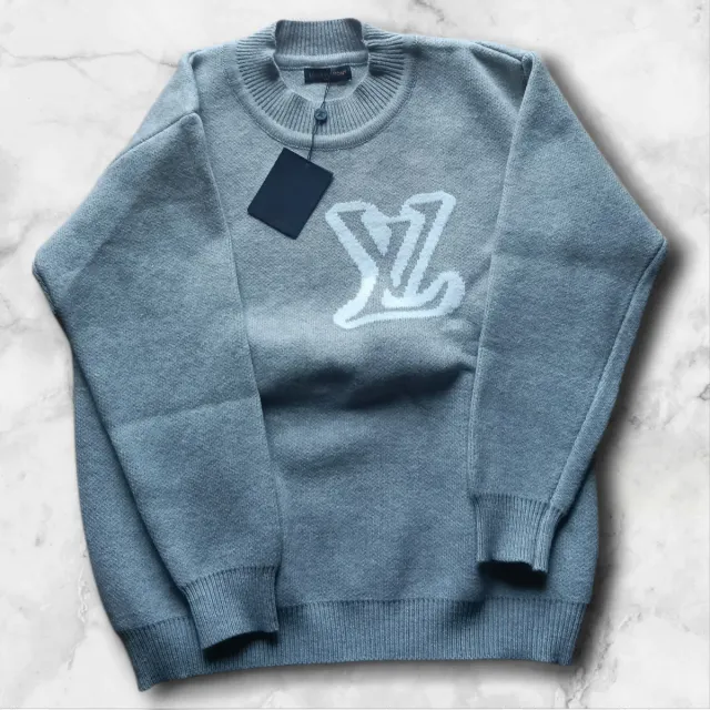 Maglione Louis Vuitton Logo Intarsia Grigio NWT
