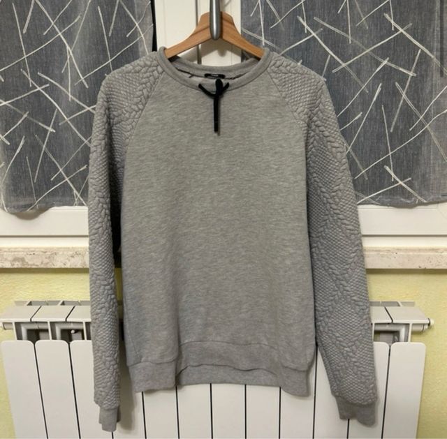 Maglione uomo grigio con maniche texturizzate