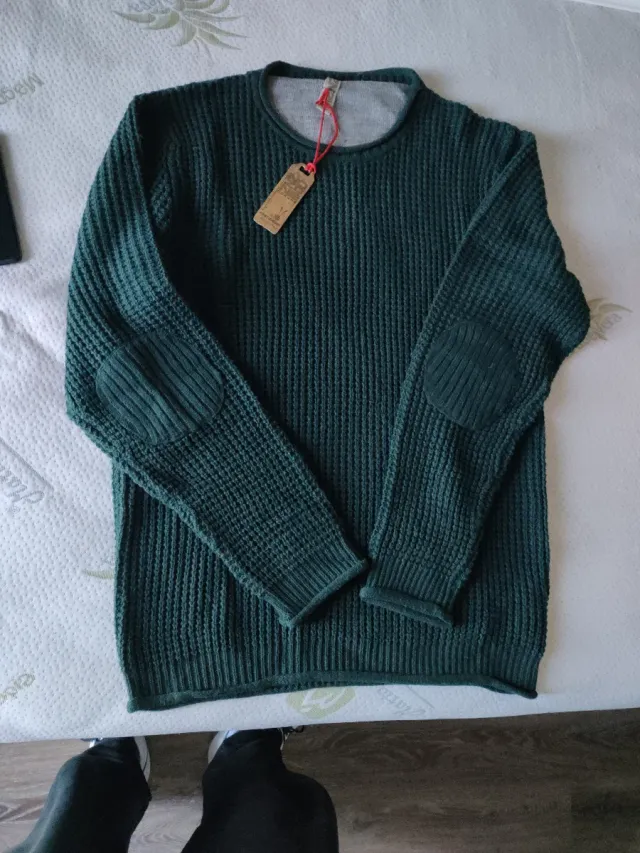 Maglione verde con toppe sui gomiti NUOVO