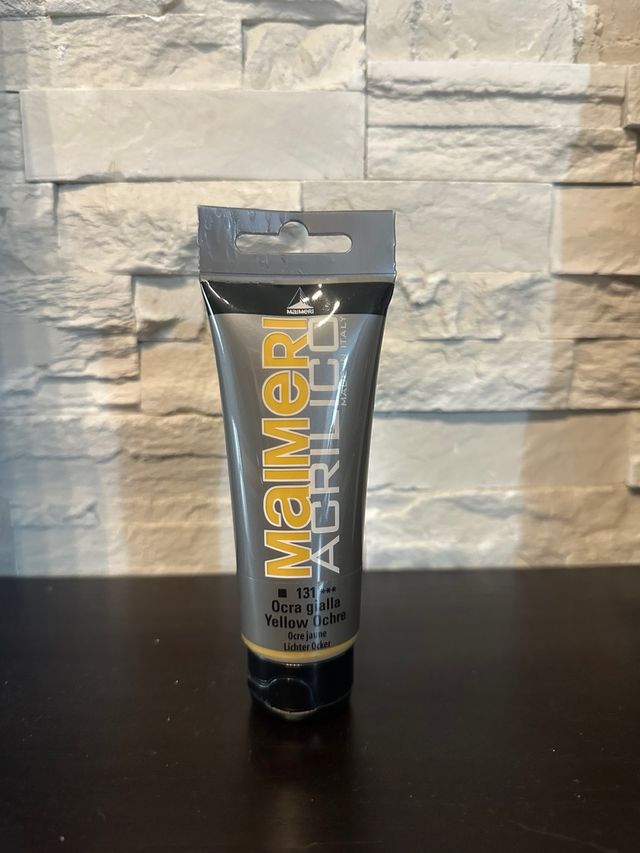 Tubo 75 ml di colore acrilico Maimeri. - Colore: Gialla Ocra (Yellow Ochre) - Codice colore: 131 - Made in Italy