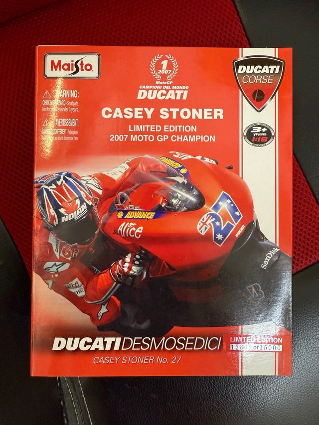 Dettagli del prodottoModellino Maisto in edizione limitata della Ducati Desmosedici di Casey Stoner, campione del mondo Moto GP 2007.