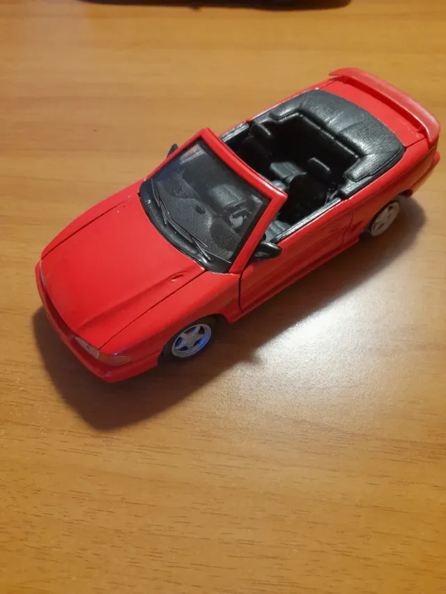 Modellino da collezione della Ford Mustang GT del 94. - Scala 1:24. - Colore rosso brillante. - Dettagli interni neri. - Nessun difetto