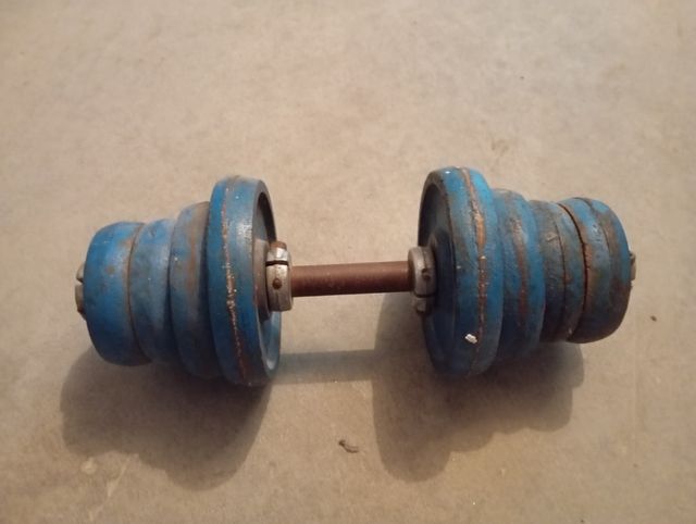Manubri con dischi regolabili, ideali per allenarsi a casa. - Colore blu. - Dischi in ghisa. - Chiusura di sicurezza
