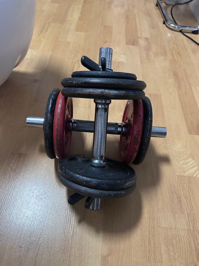- Chiusure a vite per fissare i dischi. 2 manubri da 12 chili ciascuno per 2 35€ La descrizione è stata tradotta automaticamente.