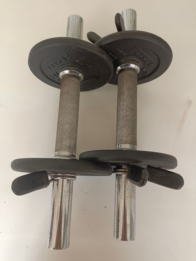 Dettagli del prodottoCoppia di manubri regolabili con dischi per pesi.